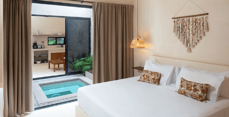 Se si entra in un appartamento al piano terra di CASA YAAKUN vi è un piccolo spazio esterno, con vegetazione tropicale e una piccola piscina, come un rifugio privato durante i periodi di riposo in cui il caldo tropicale si fa sentire. Da un lato, la grande e moderna cucina, molto luminosa, e la sua zona pranzo, più una piccola stanza. Dall’altro lato, un’accogliente camera da letto e, in fondo, un bagno molto spazioso, con una doccia rivestita di “chukum” (una specie di cemento levigato) e il suo pregiato pavimento in pietra.