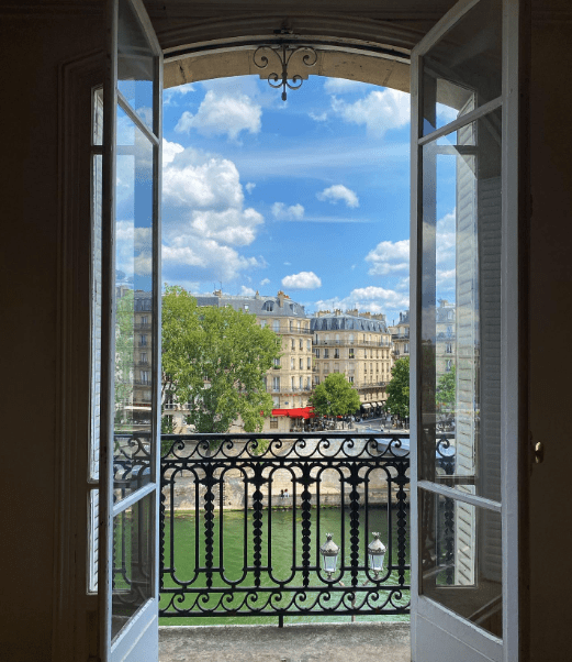 Una meravigliosa finestra che affaccia sulla Senna e che “immortala” le finestre di Parigi in lontananza.