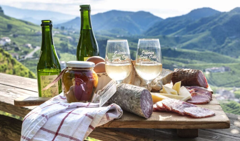 Nel corso degli anni l’offerta si è naturalmente ampliata e ora a disposizione dei visitatori vi sono anche molti prodotti tipici di altre eccellenti aziende agricole locali che collaborano a creare una positiva sinergia territoriale. Quella dell’Osteria Senz’Oste è un’evoluzione lenta ma continua che da un lato conserva il rispetto della tradizione e dall’altro non teme le sfide del futuro. Oggi questo luogo è una tappa imperdibile per ogni visitatore del territorio dell’Alta Marca trevigiana: un posto di spettacolare bellezza riconosciuto per la propria unicità.