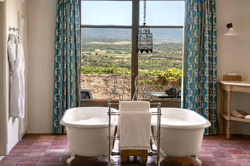 Le sorprese in Francia sono sempre dietro l’angolo. Andiamo in Vaucluse, dove si trova Crillon Le Brave, per un piccolo gioco a due davvero insolito. Questo hotel a 5 stelle si immerge tra i casolari del XVII e XVIII secolo, le scale e le gallerie di un villaggio provenzale molto affascinante. L’eccezionale vista panoramica sul Mont Ventoux, sui vigneti e sugli uliveti dove lo sguardo si perde è particolarmente apprezzata dalle coppie. Proprio gli innamorati si trovano fianco a fianco nelle acque delle due vasche d’epoca all’interno della bellissima suite duplex Ventoux signature di ben 80 mq.