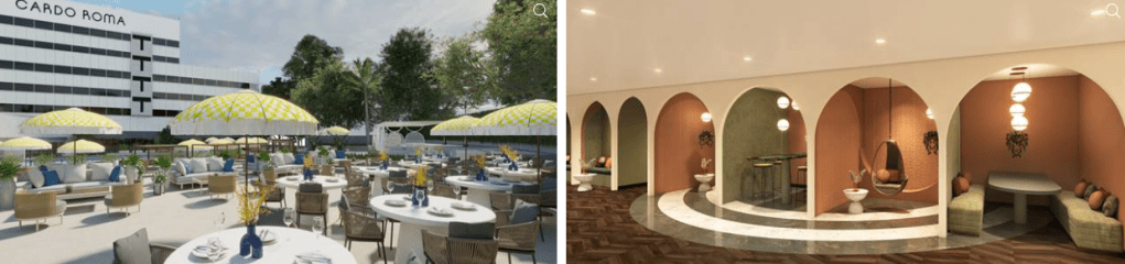 Punto d’incontro tra tradizione e modernità, Cardo Roma è un lifestyle hub. Favorisce ed esalta il connubio tra elementi apparentemente opposti: la notte e il giorno, il lavoro ed il gioco, la storia e la modernità che si uniscono e fondono in una cosa sola. Il giorno – rappresentato dalla parola SOL in Latino – è raffigurato dalla forza della luce, nelle attività di mindfulness e dagli ampi spazi dell’ hotel, come la piscina esterna o la lussureggiante Spa.