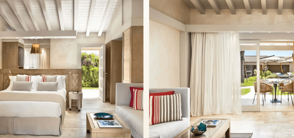 Le camere e le suite con giardino rendono omaggio al patrimonio culturale dell’isola, ricco di vegetazione e giardini bellissimi. I motivi della tessitura sarda, le luci, i mobili in ginepro locale, le grandi finestre creano un incredibile filo conduttore con la natura circostante. Spazi interni ed esterni sono in perfetta simbiosi.