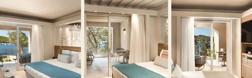 Situate a pochi passi dalla riva e circondate dal verde della macchia mediterranea che la meravigliosa Sardegna custodisce gelosamente, le camere e le suite con vista sul mare sono l’ambiente ideale per vivere quel “ozio” che si ama tanto quando si è nella suggestiva isola.