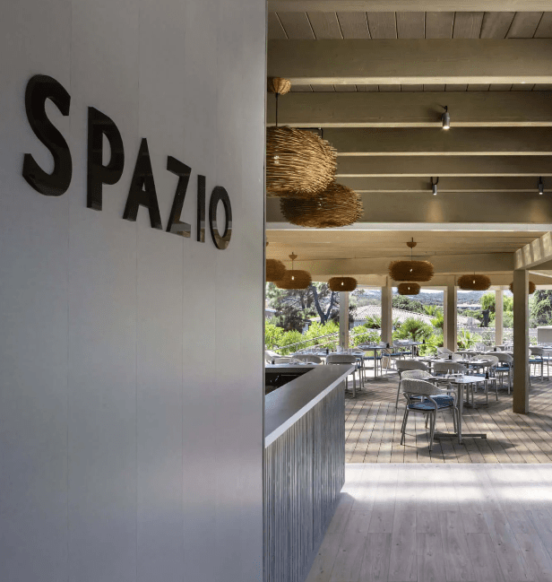 Con vista sulla piscina principale, Spazio by Franco Pepe è il posto perfetto per degustare una pizza di classe. All’interno del menu si possono trovare la “Margherita Sbagliata”, la “Scarpetta” e le altre pizze che hanno portato Franco Pepe ed essere premiato come miglior pizzaiolo del mondo per due anni di fila.