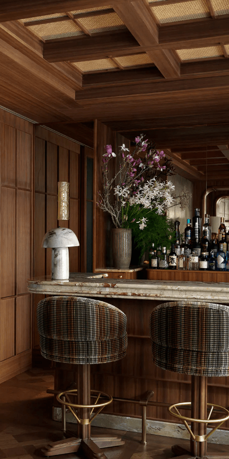 Giocando sulla dicotomia tra romanticismo e sobrietà, invita i toni morbidi a fondersi con tessuti e materiali presi in prestito dall’Art Nouveau. In ogni momento si respira un’aria di arte e di viaggio nel Paese del Sol Levante restando con i piedi bel saldi nella Ville Lumière.