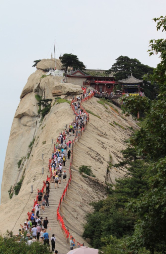 Per chi ama il rischio e non certo la tranquillità cosa c’è di meglio di una passeggiata sul Monte Hua Shan, uno dei percorsi più pericolosi e terrificanti del mondo. E allora tutti pronti per ben 4 ore di camminata lungo piccoli scalini incastonati nella roccia, a questi si aggiunge il sentiero Changkong Zhandao, una stretta passerella in legno traballante. All’inizio del percorso si consiglia sempre di acquistare o noleggiare un’imbracatura con la quale legarsi alla catena di ferro che scorre lungo il percorso. Dopo la passeggiata “pericolosa” ci si rilassa nel piccolo santuario sul dirupo che offre una stupefacente vista panoramica.