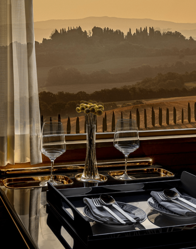 “Abbandonatevi all’incanto de La Dolce Vita. Immergetevi nell’eleganza e nell’esclusività di un treno iconico. Preparatevi per un viaggio indimenticabile attraverso l’Italia e il suo inconfondibile lifestyle”. Recita così lo slogano nel sito.