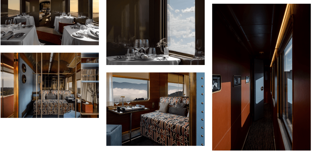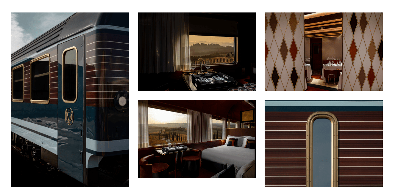 Il treno attraverserà ben 14 regioni italiane con otto itinerari esclusivi, toccando meravigliosi punti della nostra Bella Italia come Venezia, Portofino, Siena, i Sassi di Matera, i vigneti di Montalcino, la via del tartufo verso Nizza Monferrato, fino a Catania, Palermo e Taormina. Il treno è composto da 31 cabine, tra cui 18 suite, 12 deluxe e la prestigiosa Suite La Dolce Vita. Le carrozze storiche sono state riportate a nuova vita. La flotta ferroviaria privata conterà sei convogli operativi esclusivamente in Italia. Gli interni sono elegantissimi e sono stati curati dallo studio Dimorestudio ispirati all’epoca d’oro de “La Dolce Vita” e quell’arte italiana tipica degli anni ’60. I materiali sono pregiati e i dettagli artigianali omaggiano grandi designer come Gio Ponti, Nanda Vigo, Gae Aulenti e Osvaldo Borsani.