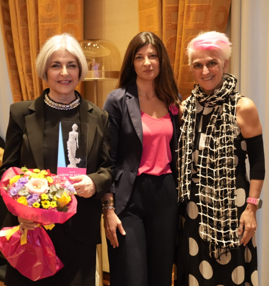 La giornalista Mara Cella (al centro) con due delle “Donne di Roma” premiate