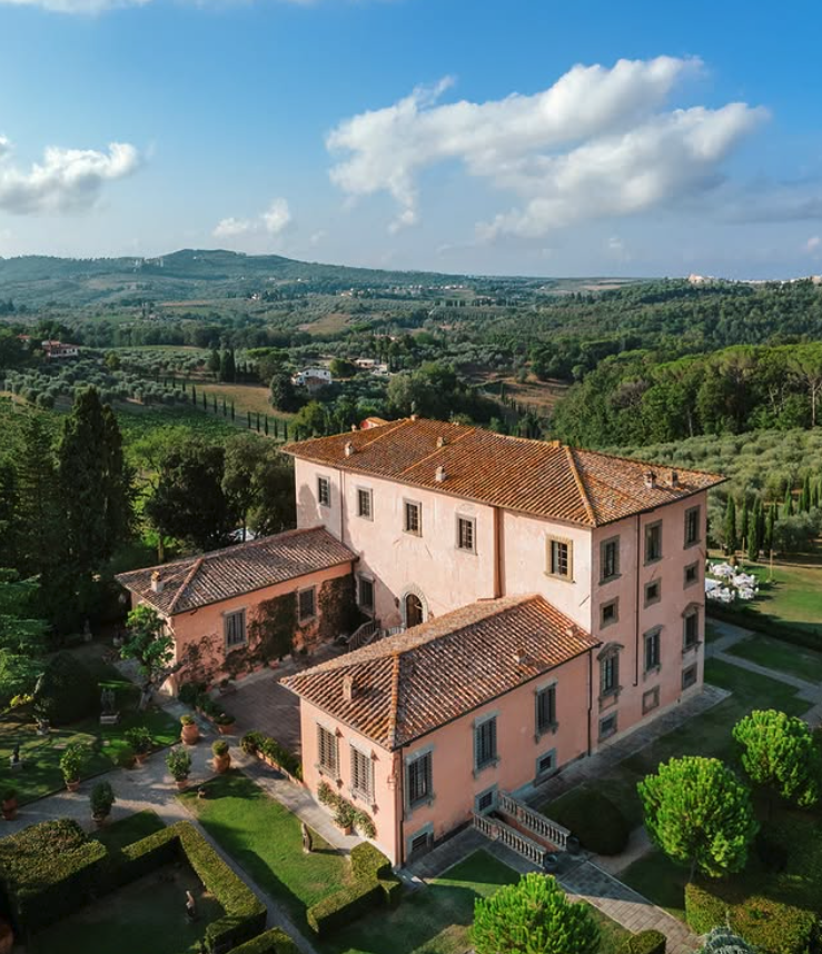 Villa Mangiacane, situata nel cuore delle colline toscane, dimora rinascimentale risalente al XV secolo. Originariamente costruita per la famiglia Machiavelli, la villa è legata alla figura del celebre Niccolò Machiavelli e si narra che abbia beneficiato del tocco artistico del maestro Michelangelo. Questo capolavoro architettonico, circondato da 600 acri di vigneti e uliveti, è oggi una destinazione unica per matrimoni, eventi privati ed esperienze indimenticabili legate all’enogastronomia e al benessere.