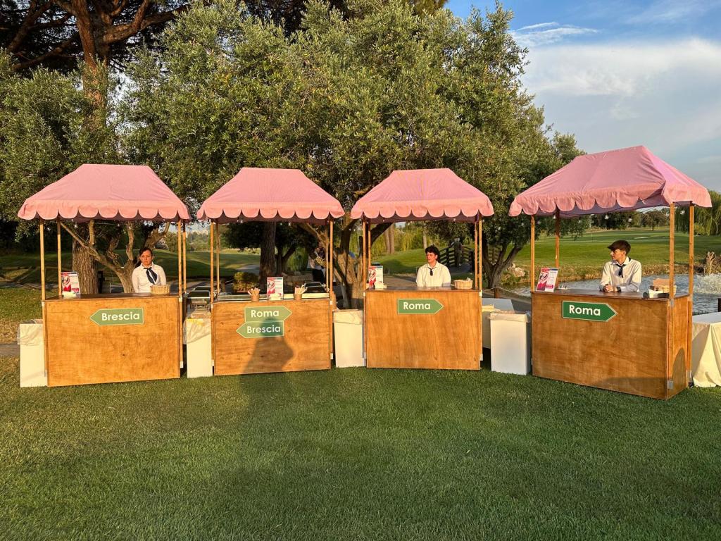 In stile street food, 8 carretti hanno proposto piatti tipici romani e bresciani, in omaggio proprio alla gara su auto d’epoca, con panino con spiedo di carne alla griglia sia di maiale che di pollo, con salsa alle erbe; casoncelli burro, salvia e guanciale; Bertagni (filetto di baccalà fritto con salsa tartara); Amatriciana; pizza ripiena con mortadella; maritozzo con porchetta; panino cicoria e polpetta al sugo; varietà di dolci.