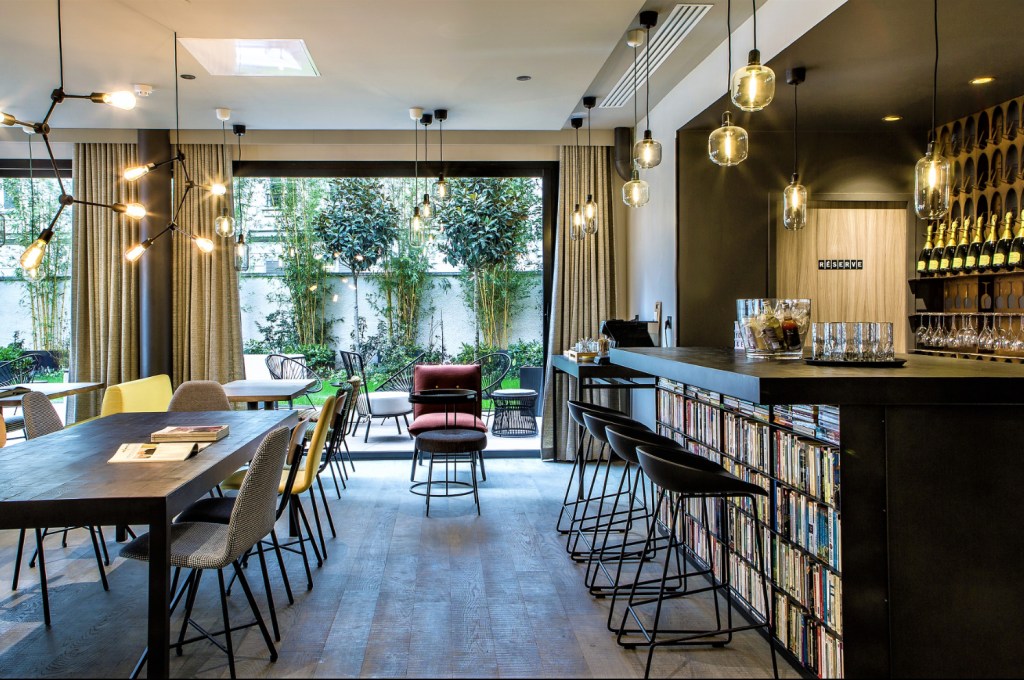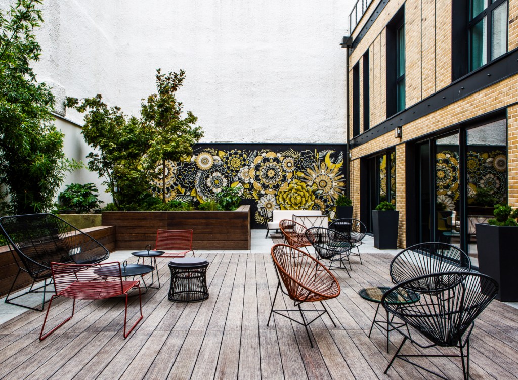 Luogo molto frequentato, questo hotel ha come cuore uno spazio aperto immerso nella serenità, dove le persone amano incontrarsi per una semplice pausa, leggere un libro o gustare un pasto. Illuminati da un enorme lucernario, seduti su una sedia comoda e di tendenza, potrete ammirare l’opera simbolo dell’hotel: “Mur végétal #3” di SupaKitch & Koralie, un affresco di street art che ricopre un’intera parete del Patio.
