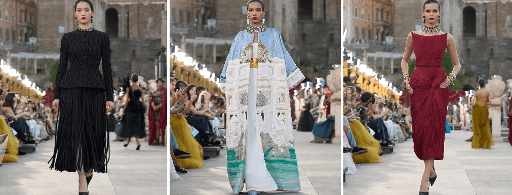 Lunedì 14 luglio, invece lo scenario è stato ben diverso, sui Fori Imperiali con la sfilata per la Collezione Dolce&Gabbana Alta Moda.