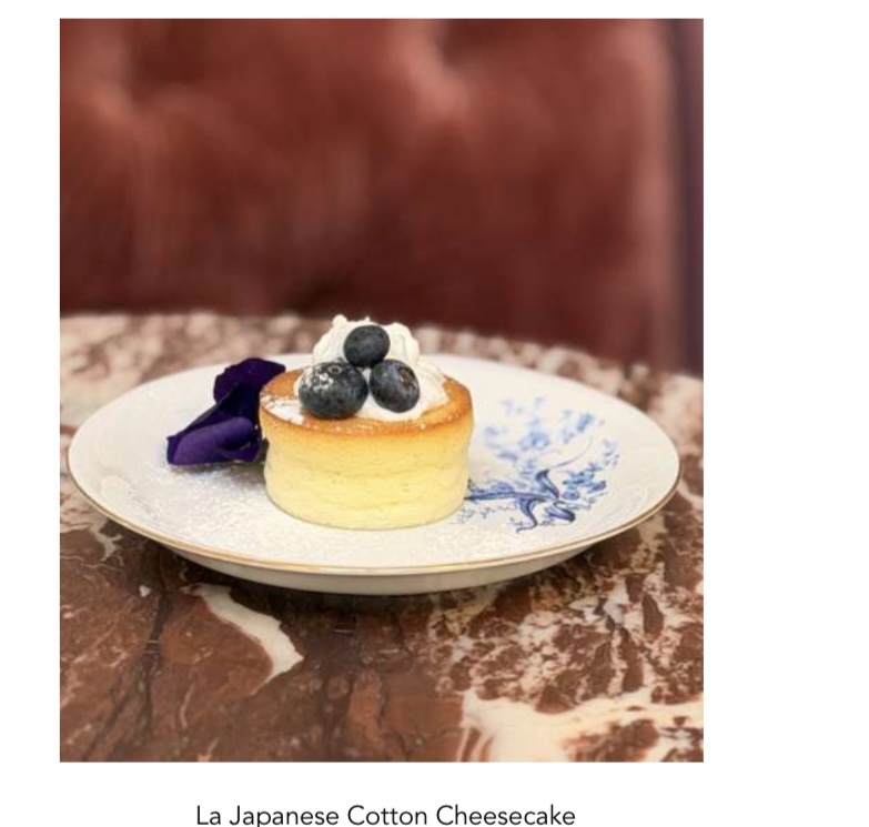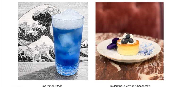 Accanto al cocktail, la Japanese Cotton Cheesecake, ideata dalla Pastry Chef Francesca Cascia, si ispira alle nuvole che avvolgono il Monte Fuji nelle celebri vedute di Hokusai. Questo dolce, tipico della tradizione giapponese, si distingue per la sua consistenza estremamente soffice: realizzato con una lenta lavorazione di uova, farina, burro e panna, ricorda un soufflé leggero e arioso che si scioglie delicatamente al palato.